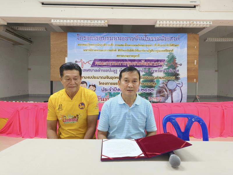 รายละเอียด : วันที่ 25 กันยายน 2567 เวลา 09.30 น. นายมานิตร อุตรสินธุ์ นายกเทศมนตรีตำบลปะลุรู เป็นประธานในพิธีเปิดโครงการอบรมหมอชาวบ้านในราชประสงค์ ของสมเด็จพระกนิษฐาธิราชเจ้า กรมสมเด็จพระเทพรัตนราชสุดา เจ้าฟ้ามหาจักรีสิริรธร มหาวชิราลงกรณราชภักดี สิริกิจการิณีพีณีพีรยพัฒนรัฐสีมาคุณากรปิยชาติ สยามบรมราชกุมารี พร้อมด้วยคณะผู้บริหาร/ สมาชิกสภาเทศบาลและผู้เข้าร่วมโครงการ ณ ห้องประชุมโรงเรียนมัธยมสุไหงปาดี จัดโดยคณะกรรมการชุมชนพัฒนาการ