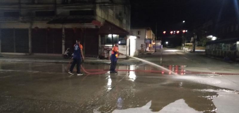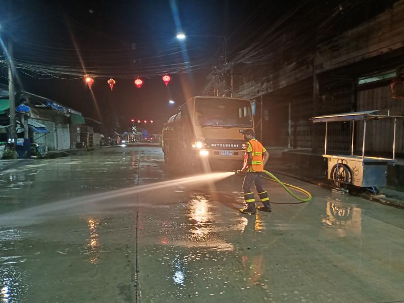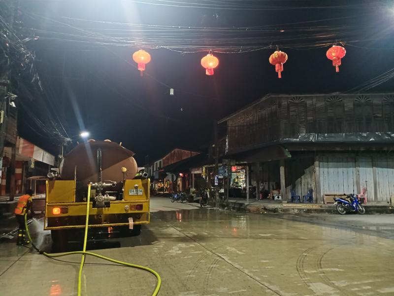 ล้างทำความสะอาดเศษทรายบนถนนในเขตเทศบาล