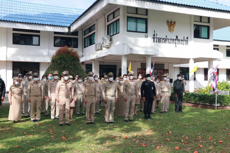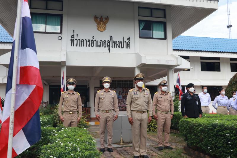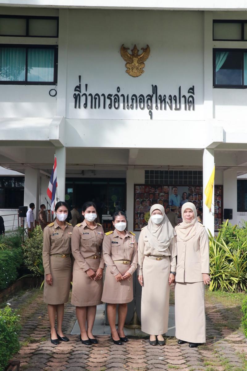 พนักงานเทศบาลตำบลปะลุรู เข้าร่วมกิจกรรมเคารพธงชาติ และร้องเพลงชาติไทย ณ บริเวณหน้าเสาธง ที่ว่าการอำเภอสุไหงปาดี