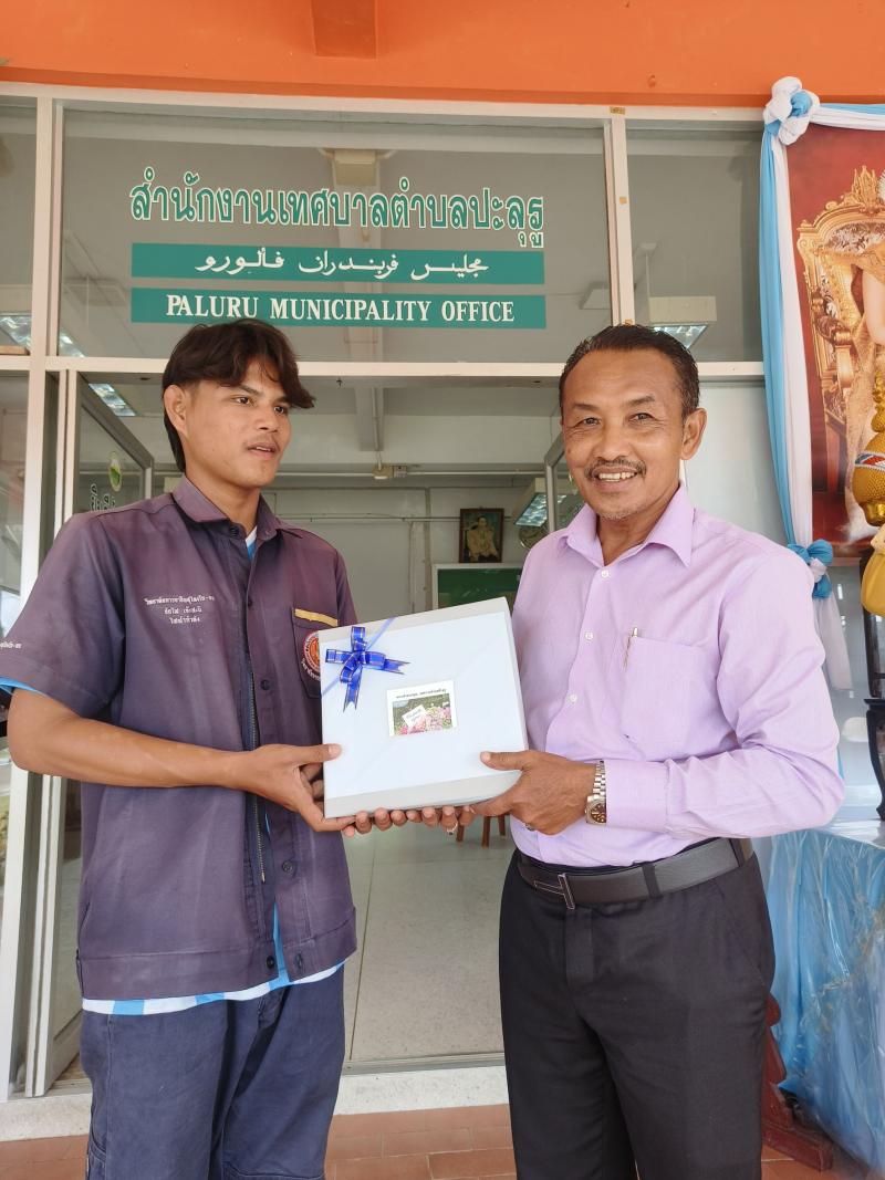 รายละเอียด : นายกเปาะลง มอบของที่ระลึกและให้โอวาทแก่นักศึกษาฝึกงาน _____ วันที่ 12 กันยายน 2568 นายมะยูฮา เบ็ญกาซอ นายกเทศมนตรีตำบลปะลุรู พร้อมด้วยรองสุริยันต์ และประธานสภา ได้ร่วมกันมอบของที่ระลึกให้กับนักเรียนฝึกงานจากวิทยาลัยการอาชีพสุไหงโก-ลก ที่มาฝึกประสบการณ์ ณ กองช่าง เทศบาลตำบลปะลุรู ในโอกาสนี้ นายกเทศมนตรีได้ให้โอวาทแก่นักศึกษาฝึกงาน เพื่อเป็นกำลังใจและแนวทางในการประกอบอาชีพในอนาคต หวังว่าประสบการณ์ที่นี่จะเป็นประโยชน์กับน้องๆ