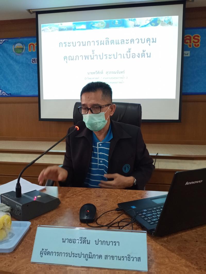 รายละเอียด : วันที่ 15 มีนาคม 2565 เวลา 09.00 น. ณ ห้องประชุมศรีบุหงา อาคารเฉลิมพระเกียรติ เทศบาลตำบลปะลุรู อำเภอสุไหงปาดี จังหวัดนราธิวาส ศูนย์อนามัยที่ 12 ยะลา ร่วมกับสำนักงานสาธารณสุขจังหวัดนราธิวาส ได้จัดทำโครงการเพิ่มประสิทธิภาพการจัดการน้ำเพื่อการบริโภคในพื้นที่เขตสุขภาพที่ 12 กิจกรรมประชุมเชิงปฏิบัติการ พัฒนาศักยภาพผู้ดูแลระบบประปา องค์กรปกครองส่วนท้องถิ่นและประปาหมู่บ้าน โดยมีวัตถุประสงค์เพื่อพัฒนา ศักยภาพผู้ดูแลระบบประปา องค์กรปกครองส่วนท้องถิ่นและประปาหมู่บ้านในพื้นที่เขตสุขภาพที่ 12 และพัฒนาศักยภาพอาสาสมัครเฝ้าระวังคุณภาพน้ำ โดยมีนายมานิตร อุตรสินธ์ุ นายกเทศมนตรีตำบลปะลุรู เป็นประธานในพิธีเปิดการประชุม พร้อมด้วยคณะผู้บริหารเทศบาล ผอ.กองสาธารณสุขฯ เจ้าหน้าที่กองการประปา เจ้าหน้าที่อสม.เทศบาล และพนักงานงานเทศบาล เข้าร่วมการประชุม ซึ่งได้รับเกียรติจากท่านอารีดีน ปากบารา ผู้จัดการประปาภูมิภาคสาขานราธิวาส และนายสะหลัน สามะ ศูนย์อนามัยที่ 12 ยะลา มาเป็นวิทยากรในการบรรยายครั้งนี้