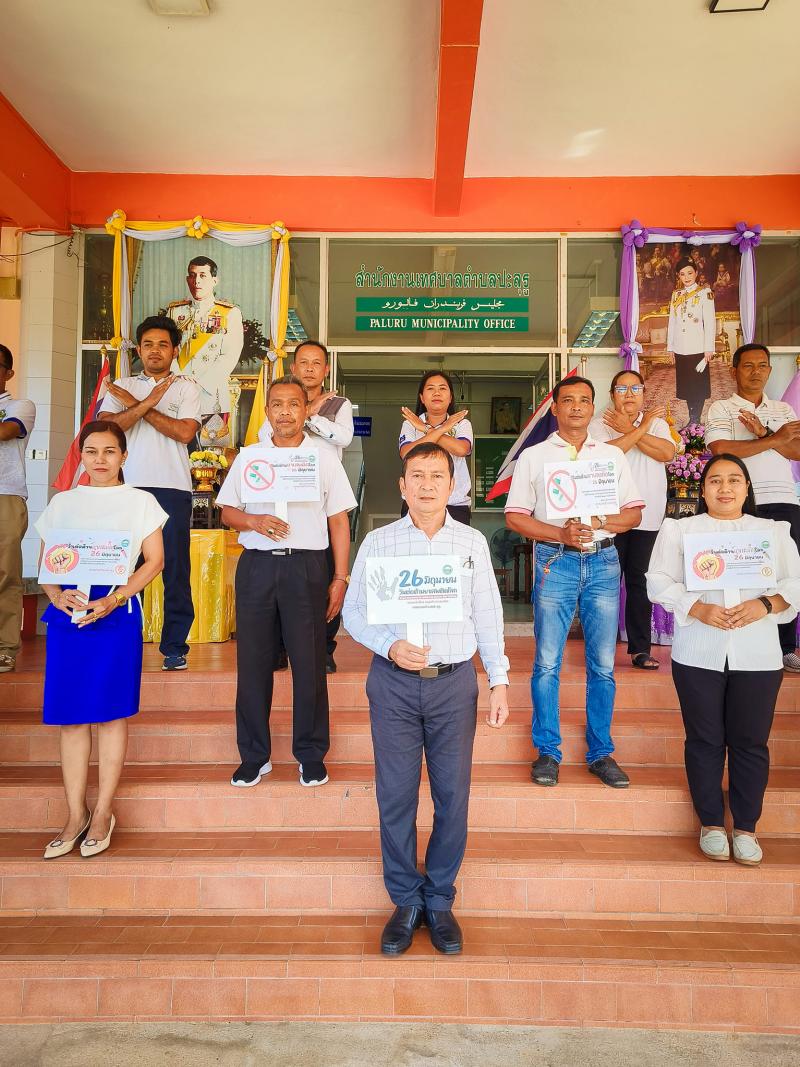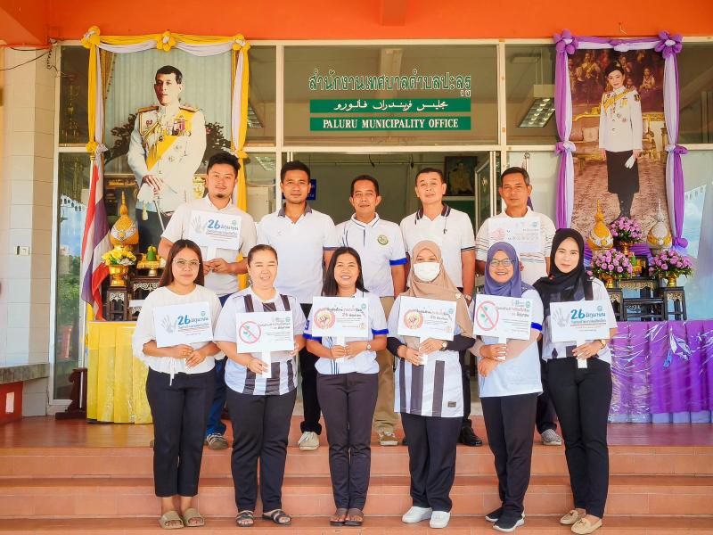 รายละเอียด : วันที่ 26 มิถุนายน 2566 นายมานิตร อุตรสินธุ์ นายกเทศมนตรีตำบลปะลุรู พร้อมด้วยพนักงานเทศบาล ร่วมรณรงค์เนื่องในวันต่อต้านยาเสพติดโลก 26 มิถุนายน ประจำปี 2566 เทศบาลตำบลปะลุรู ขอเชิญชวนประชาชนร่วมเป็นส่วนหนึ่งในการแสดงพลังต่อต้านยาเสพติด เพื่อให้ทุกประเทศทั่วโลก ได้ตระหนักถึงภัยคุกคามของปัญหายาเสพติด ที่มีผลกระทบต่อมวลมนุษยชาติ ประเทศไทย ในฐานะประเทศสมาชิก ได้ปฏิบัติและยืนยันเจตนารมณ์ร่วมกับประชาคมโลกในการต่อต้านยาเสพติด มาตั้งแต่ปี 2530 จนถึงปัจจุบัน "รวมพลังไทย หยุดภัยยาเสพติด"