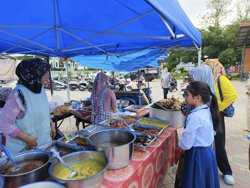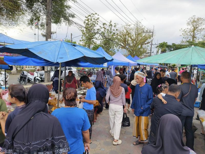 บรรยากาศภายในตลาดรอมฎอนเทศบาลตำบลปะลุรู ณ ลานเทศบาลประชาสำราญ