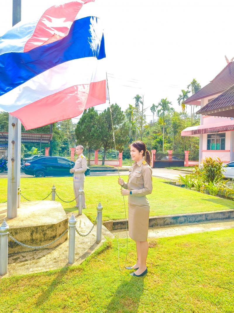 พนักงานเทศบาลตำบลปะลุรู ร่วมกิจกรรมเข้าแถวเคารพธงชาติ