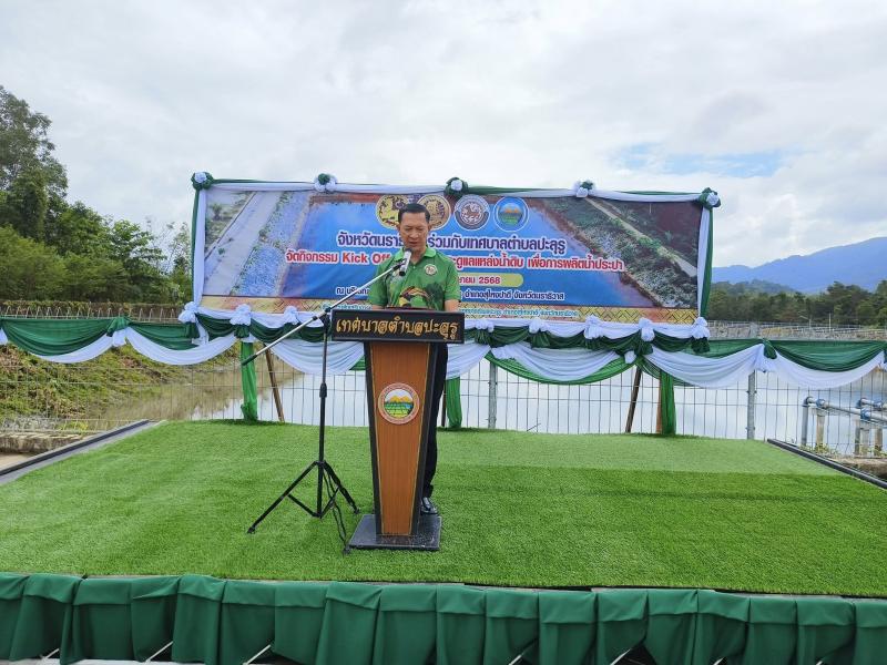 ผู้ว่าฯ นราธิวาส Kick off โครงการพัฒนา และดูแลแหล่งน้ำดิบเพื่อการผลิตน้ำประปา ณ สระสำรองน้ำดิบเทศบาลตำบลปะลุรู เทศบาลตำบลปะลุรู อำเภอสุไหงปาดี จังหวัดนราธิวาส