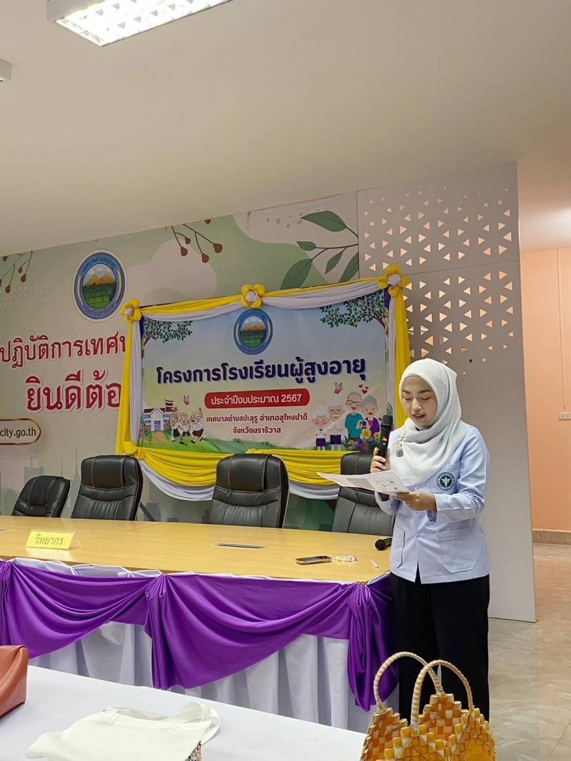 รายละเอียด : วันที่ 26 มิถุนายน 2567 เวลา 09.00 น. ฝ่ายพัฒนาชุมชน สำนักปลัดเทศบาล จัดโครงการโรงเรียนผู้สูงอายุ ประจำปีงบประมาณ 2567 ตามหลักสูตรการเรียนรู้ตลอดชีวิตเพื่อพัฒนาคุณภาพชีวิตผู้สูงอายุ (รายวิชาการให้ความรู้เกี่ยวกับการชะลอความเสื่อมของสมองและนันทนาการ) ณ อาคารศูนย์พัฒนาคุณภาพชีวิตผู้สูงอายุและผู้พิการเทศบาลตำบลปะลุรู