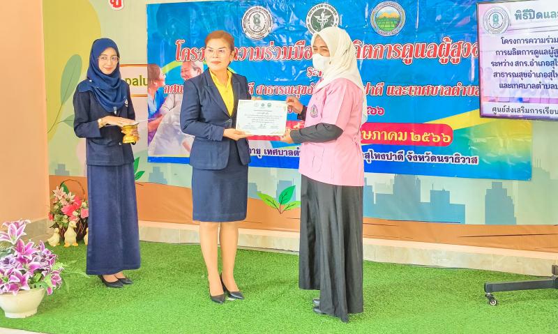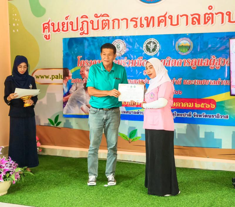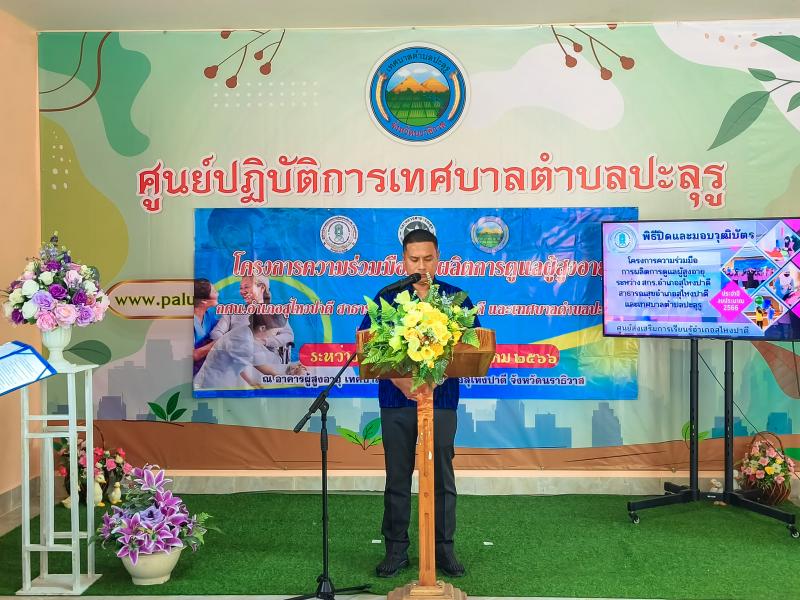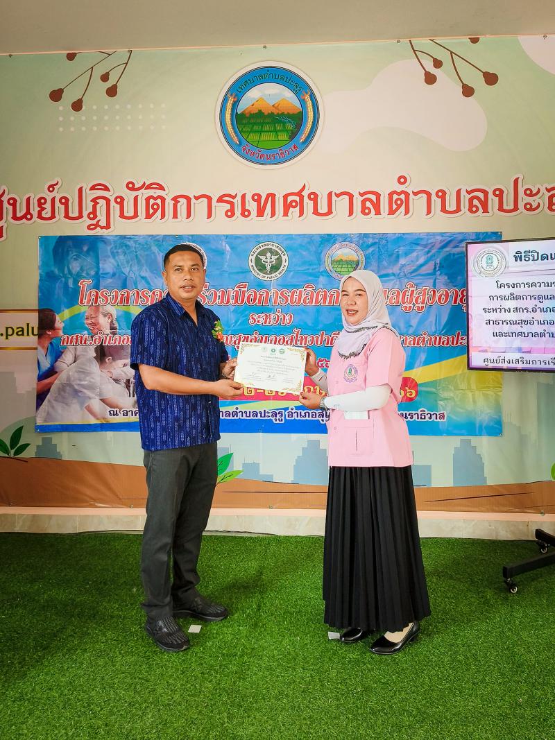 นายเชิดชัย นีรนาถภูวดล รองนายกเทศบาลตำบลปะลุรูร่วมเป็นเกียรติในพิธีมอบประกาศนียบัตรหลักสูตรการดูแลผู้สูงอายุที่มีภาวะพึ่งพิง ( Care manager )