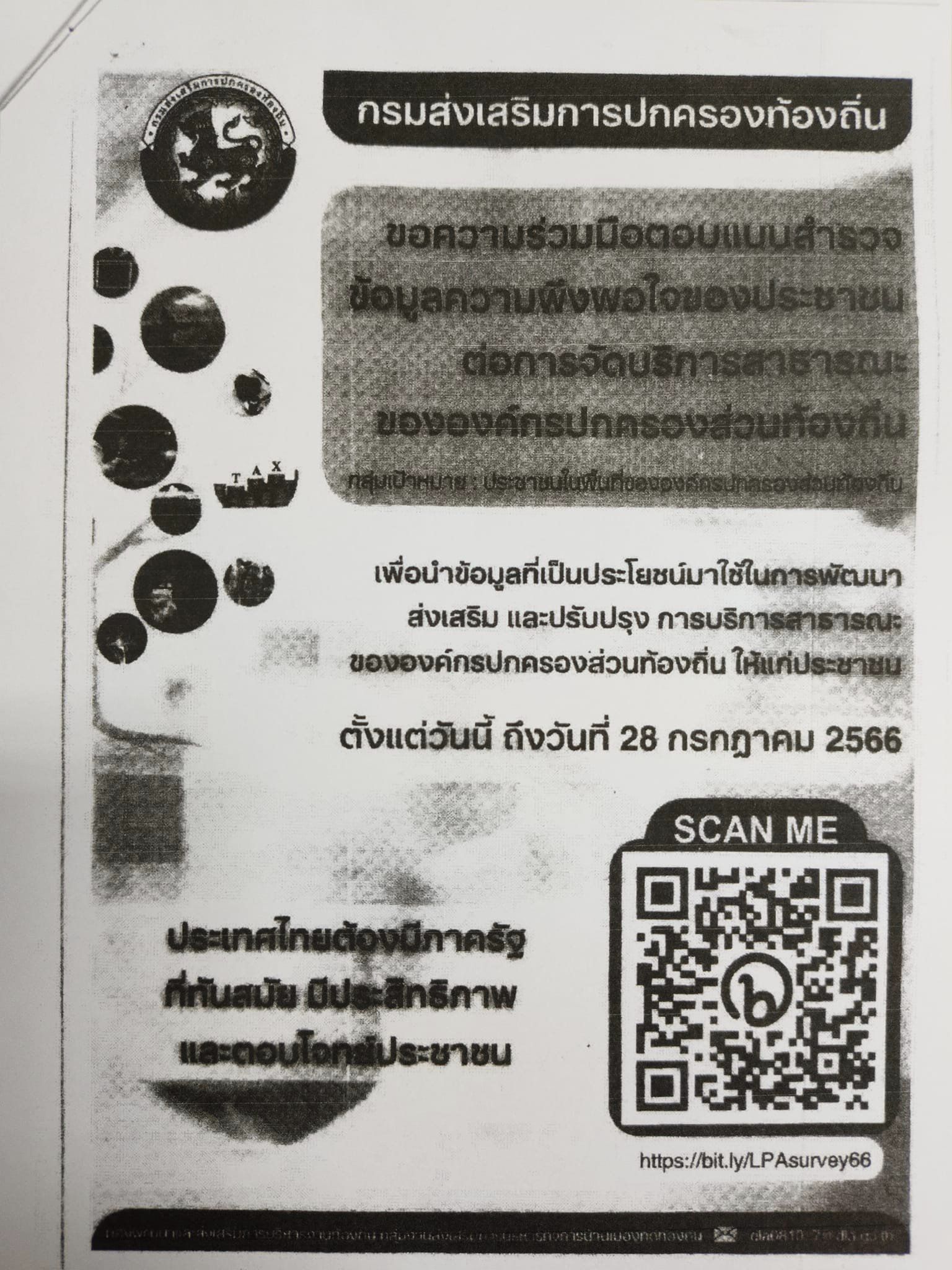 ชื่อเรื่อง : ขอความร่วมมือตอบแบบสำรวจข้อมูลความพึงพอใจของประชาชน ต่อการจัดการบริการสาธารณะขององค์กรปกครองส่วนท้องถิ่น