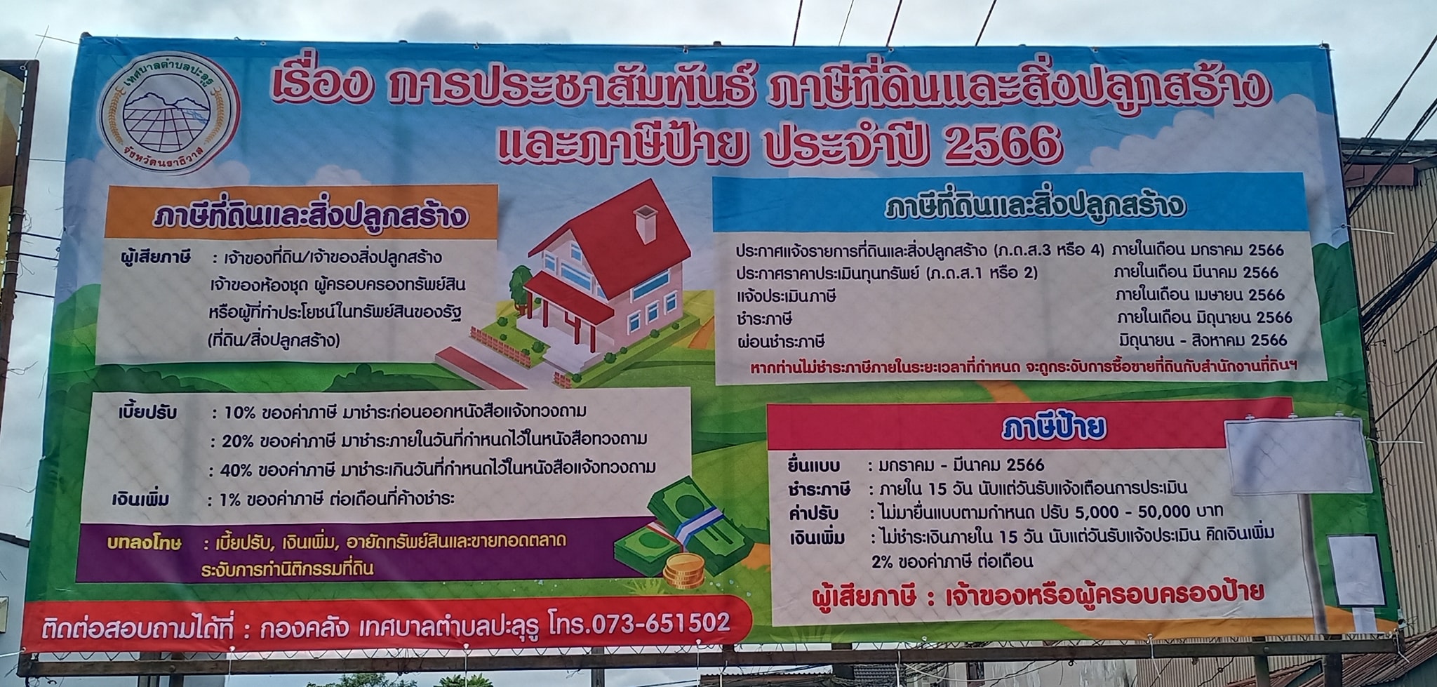 ประชาสัมพันธ์ ภาษีที่ดินและสิ่งปลูกสร้างและภาษีป้าย ประจำปี 2566