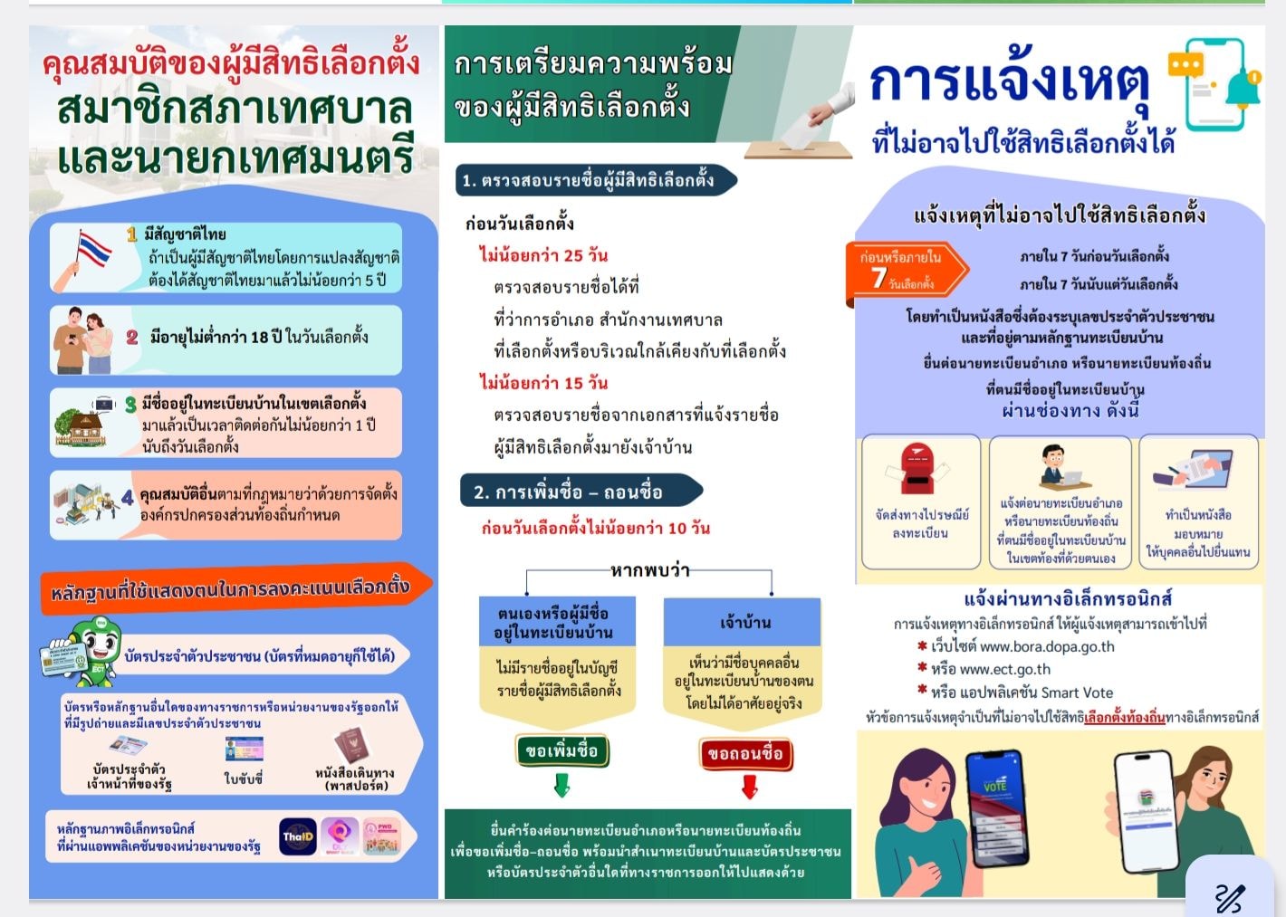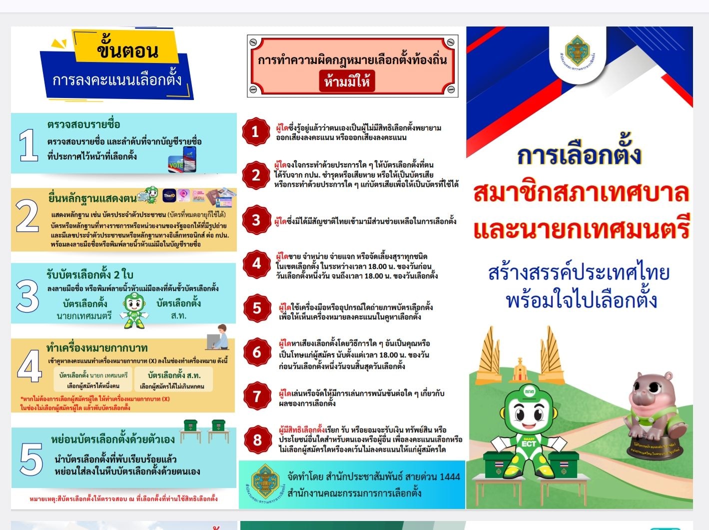 รายละเอียด : แผ่นพับเลือกตั้งเทศบาล 2568 "ขั้นตอนการลงคะแนนเลือกตั้ง"