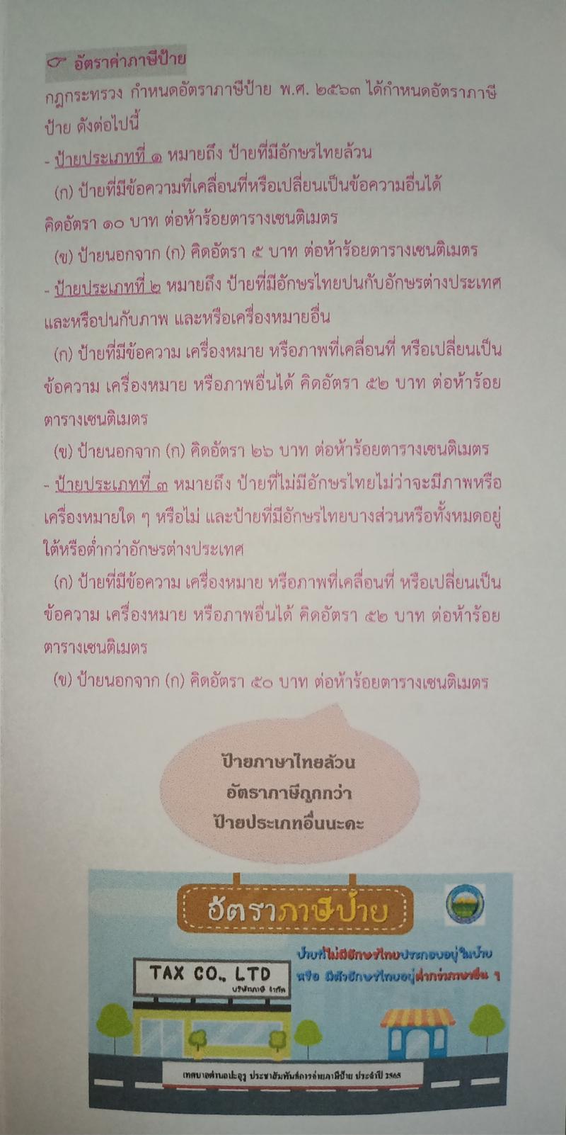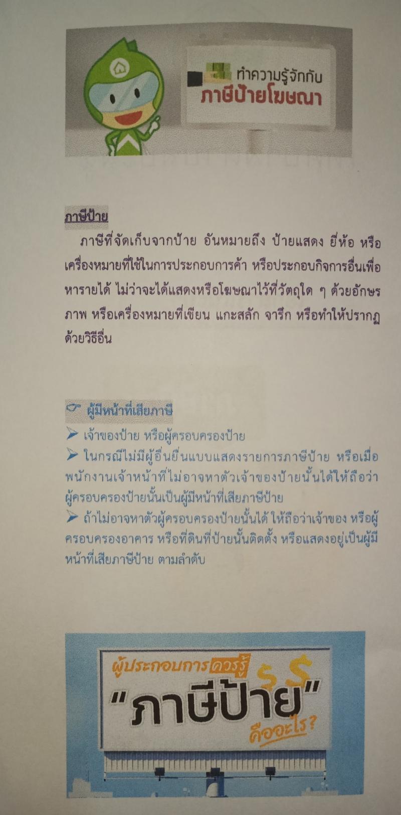 เอกสารแนะนำภาษีป้าย ประจำปี 2565 เทศบาลตำบลปะลุรู "ปะลรูน่าอยู่ ชุมชนเข้มแข็งยั่งยืน